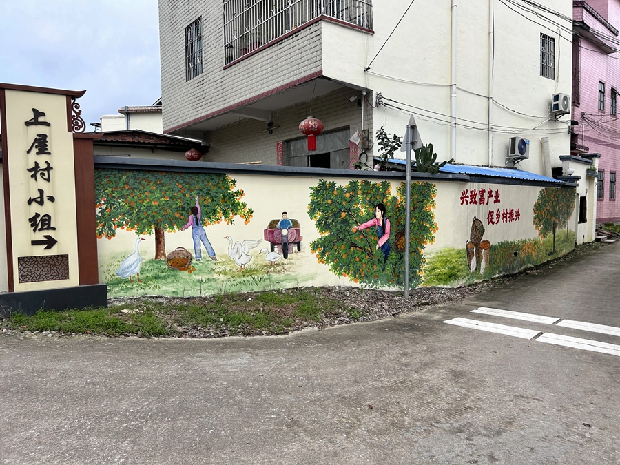 “我們想通過墻體彩繪畫這種形式扮靚家園,傳遞文明!彼膰濉皟晌眱涓刹奎S嬋儀介紹,四圍村墻體彩繪畫項目屬于“百千萬工程”中的一個項目。在提升村容村貌的同時,希望墻體彩繪畫能夠成為當地創意旅游的“引流點”,吸引旅客到四圍村游玩、拍照,從而帶動鄉村旅游的發展,增加四圍村村民的經濟收入。