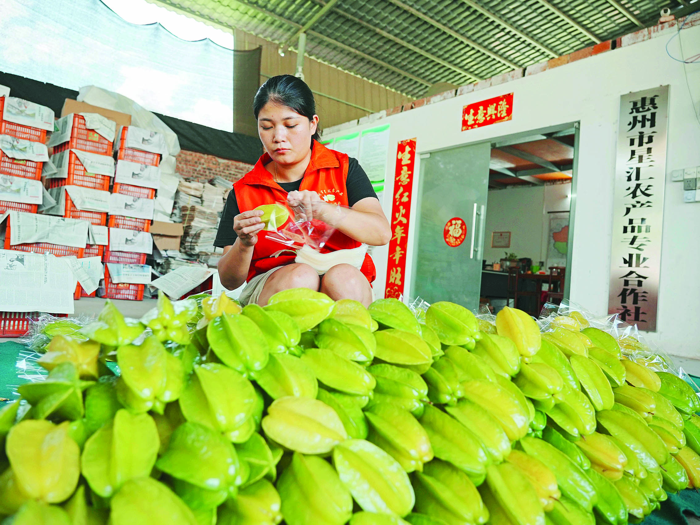 惠州市星匯農產品專業合作社員工分揀包裝楊桃。