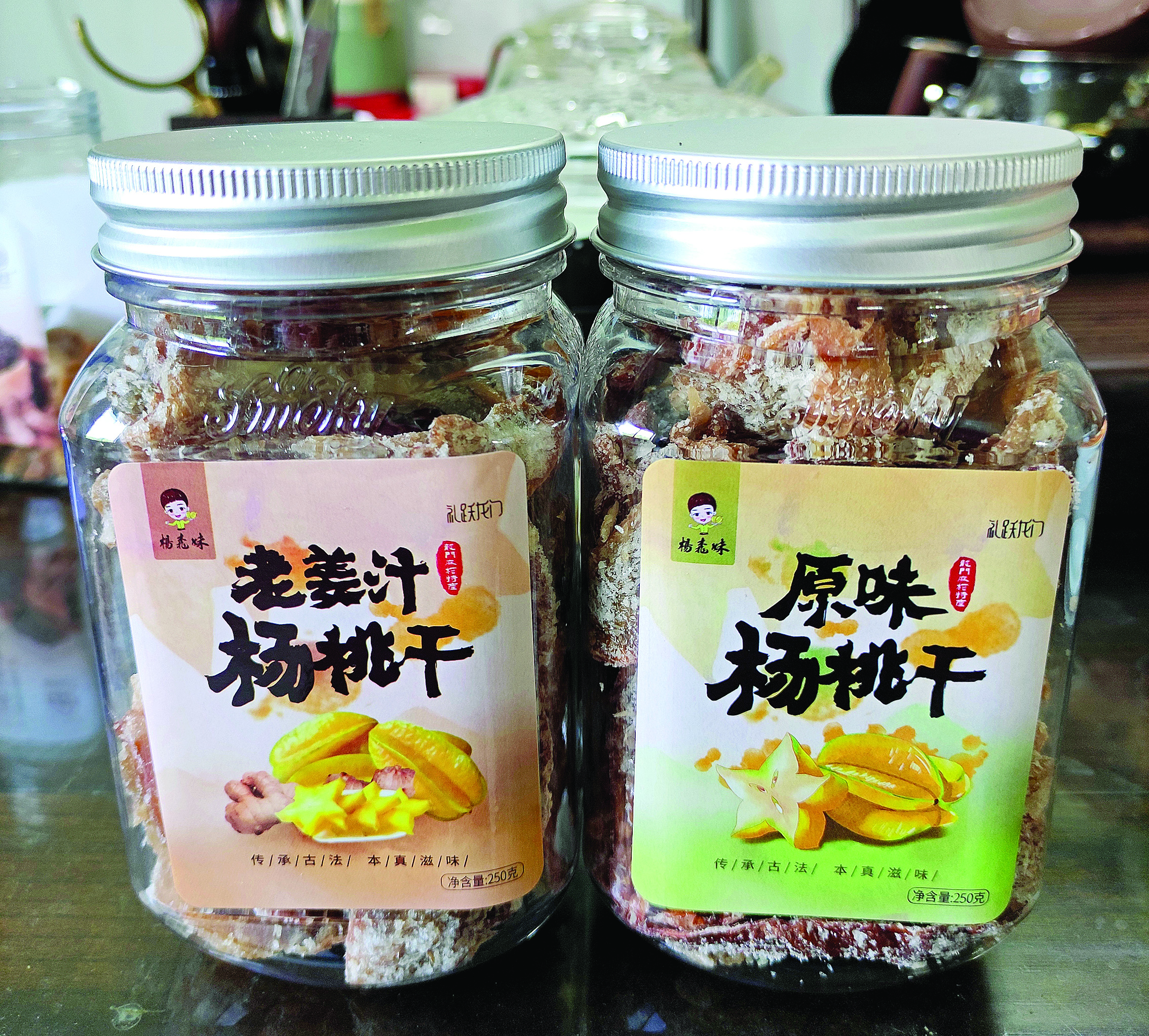 “我們去年聯合廠家研發生產出兩款楊桃涼果——原味楊桃干、老姜汁楊桃干,市場反響還不錯,幾千罐都賣完了!睆堄称颊f,將鮮楊桃制作成不同口味的休閑食品楊桃干,提升了楊桃的附加值。今年計劃根據市場反饋,進行一些口味的調整,繼續生產楊桃干。