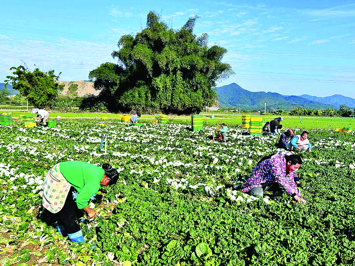 工人們在基地收割蔬菜。惠州日報記者黃宇翔 通訊員龍融心 攝