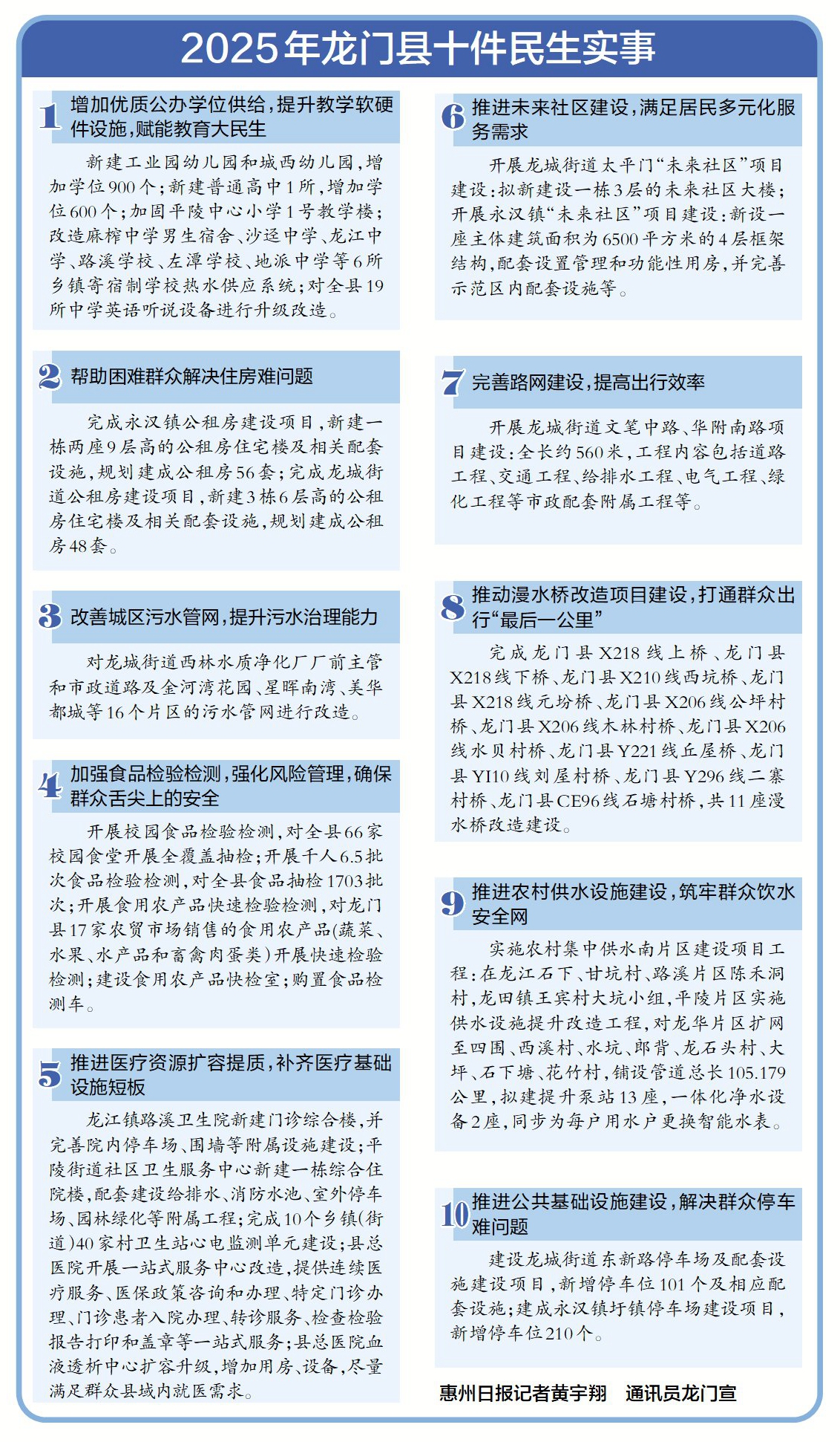 發展為了人民,發展依靠人民,發展成果由人民共享。多年來,龍門始終踐行以人民為中心的發展思想,增進民生福祉不懈怠,幸福底色持續擦亮。前不久閉幕的龍門縣第十六屆人民代表大會第六次會議,以無記名投票表決方式通過龍門縣2025年十件民生實事項目,涵蓋教育、住房、醫療、交通、安全等多個領域。