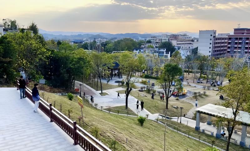 步梯的盡頭,一座觀景臺矗立眼前。觀景臺上,游客們或憑欄遠眺,或拍照留念,臉上洋溢著笑容。除了新建的步梯和觀景臺,七星山公園還對園內的地質災害隱患點進行了全面整治,市民在園內游玩更加安心。在七星山公園龍門農民畫苑工作的劉老師表示:“改造前,公園有些區域不敢開放。現在環境更好了,很多市民前來游玩。”