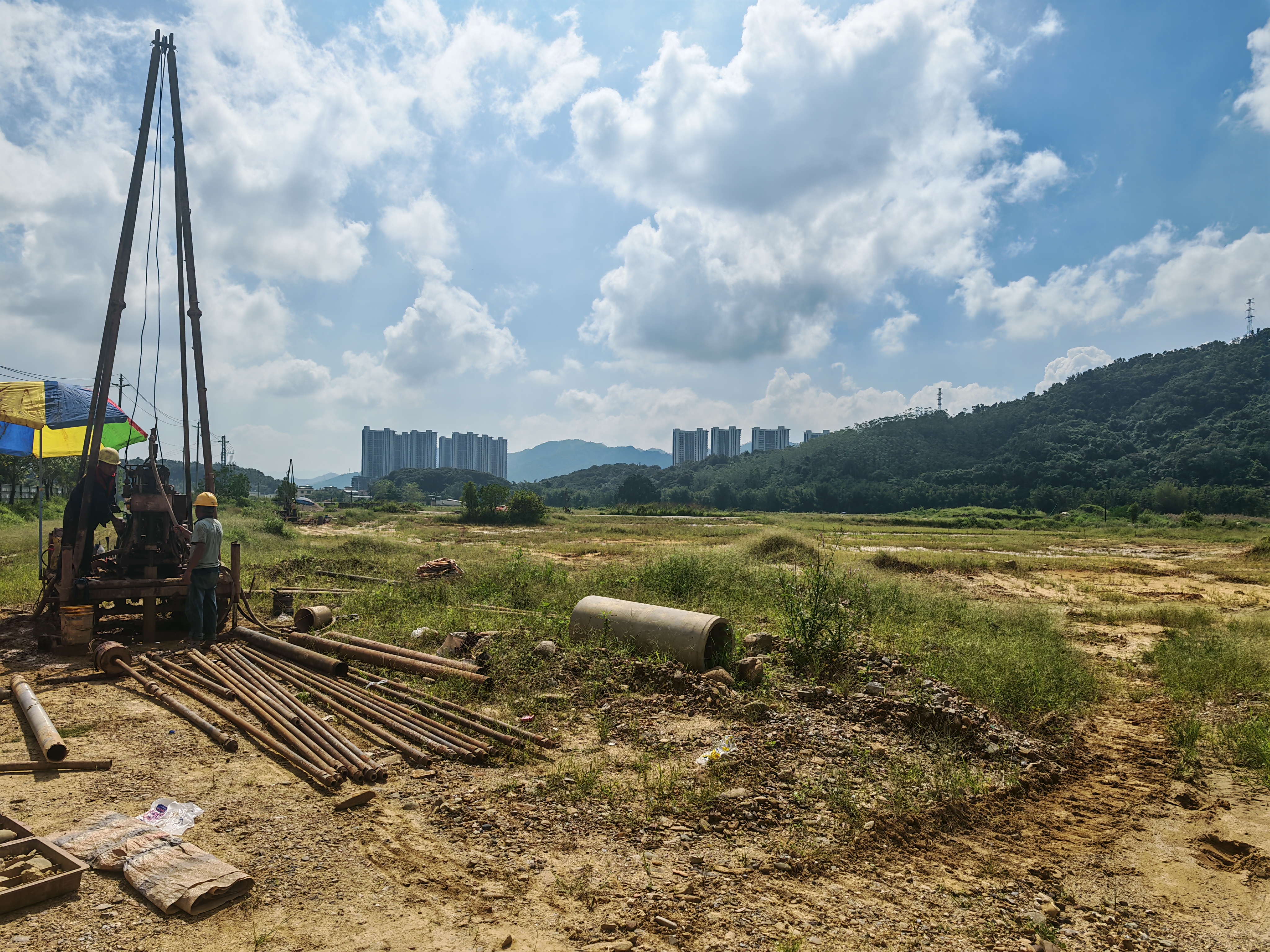 9月26日上午,隨著5臺勘察鉆機依次進場、穩穩落位,鉆頭入土哐當哐當的聲音響起,標志著龍門縣環兩山奧飛文化科技園項目地質勘察工作正式拉開序幕。