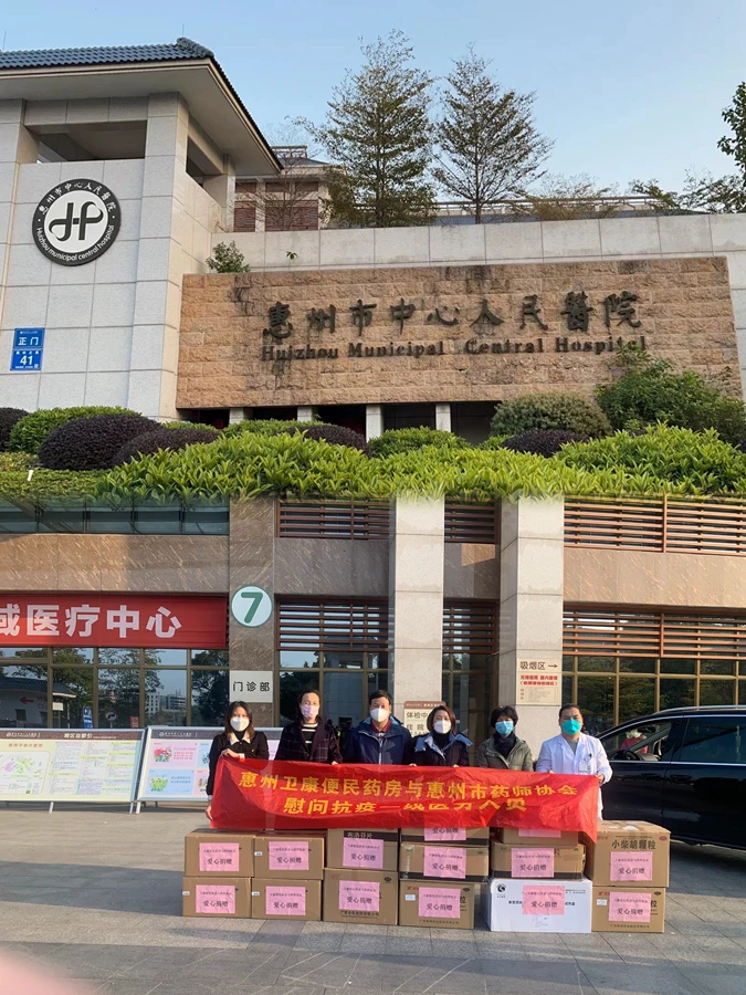 惠州市衛康藥房連鎖有限公司董事長鐘冠斌了解情況后,立即聯合惠州市藥師協會,努力協調各種資源,指揮公司管理人員全力以赴做好藥品物資的籌備并盡快捐贈到醫院。為此,衛康便民藥房在短時間內緊急采購了一批防疫藥品,解決醫院醫護人員用藥的燃眉之急,并向一線的醫護人員表示慰問。此活動得到惠州市市場監督管理局及惠州市食品藥品技術服務中心的大力支持。