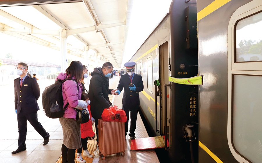 1月7日,旅客在惠州火車站檢票上車。惠州日報記者鐘暢新 攝