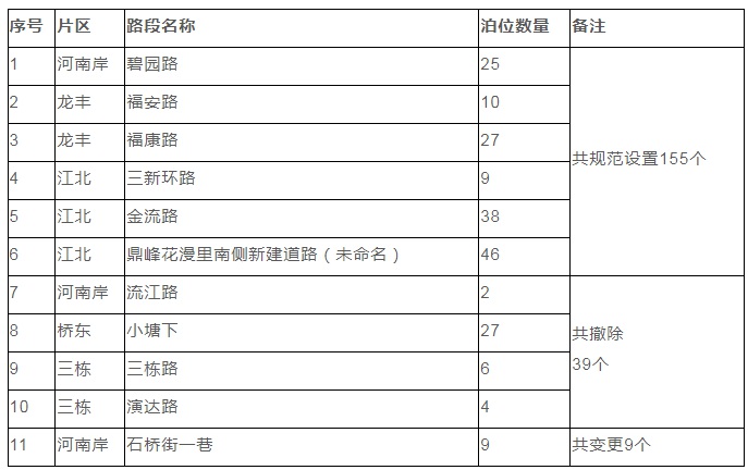 市中心城區(qū)路內(nèi)停車泊位調(diào)整明細表