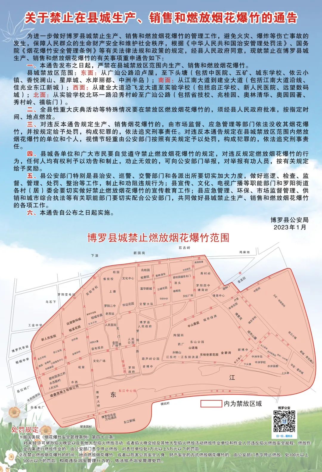 博羅縣公安局發布了《關于禁止在縣城生產、銷售和燃放煙花爆竹的通告》,通告明確了縣城禁燃區范圍、以及違反規定,將會受到的處罰,大家一起來看看。