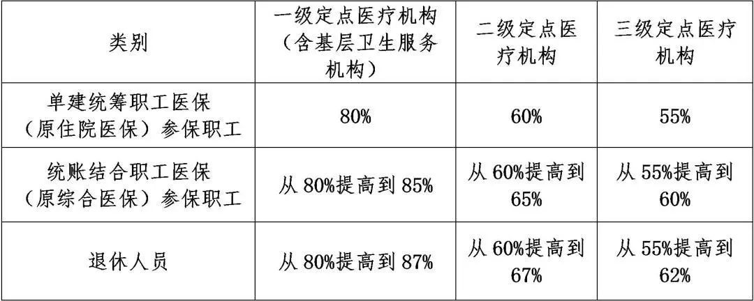 3、報銷比例:參保職工可在本市行政區域內選擇一家定點醫療機構,作為本人的門診定點機構。具體報銷比例為: