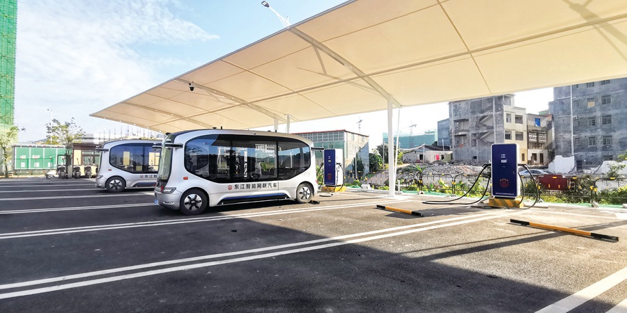 中韓(惠州)產(chǎn)業(yè)園起步區(qū)無人駕駛公交車。惠州日報記者李松權(quán) 劉煒煒 攝