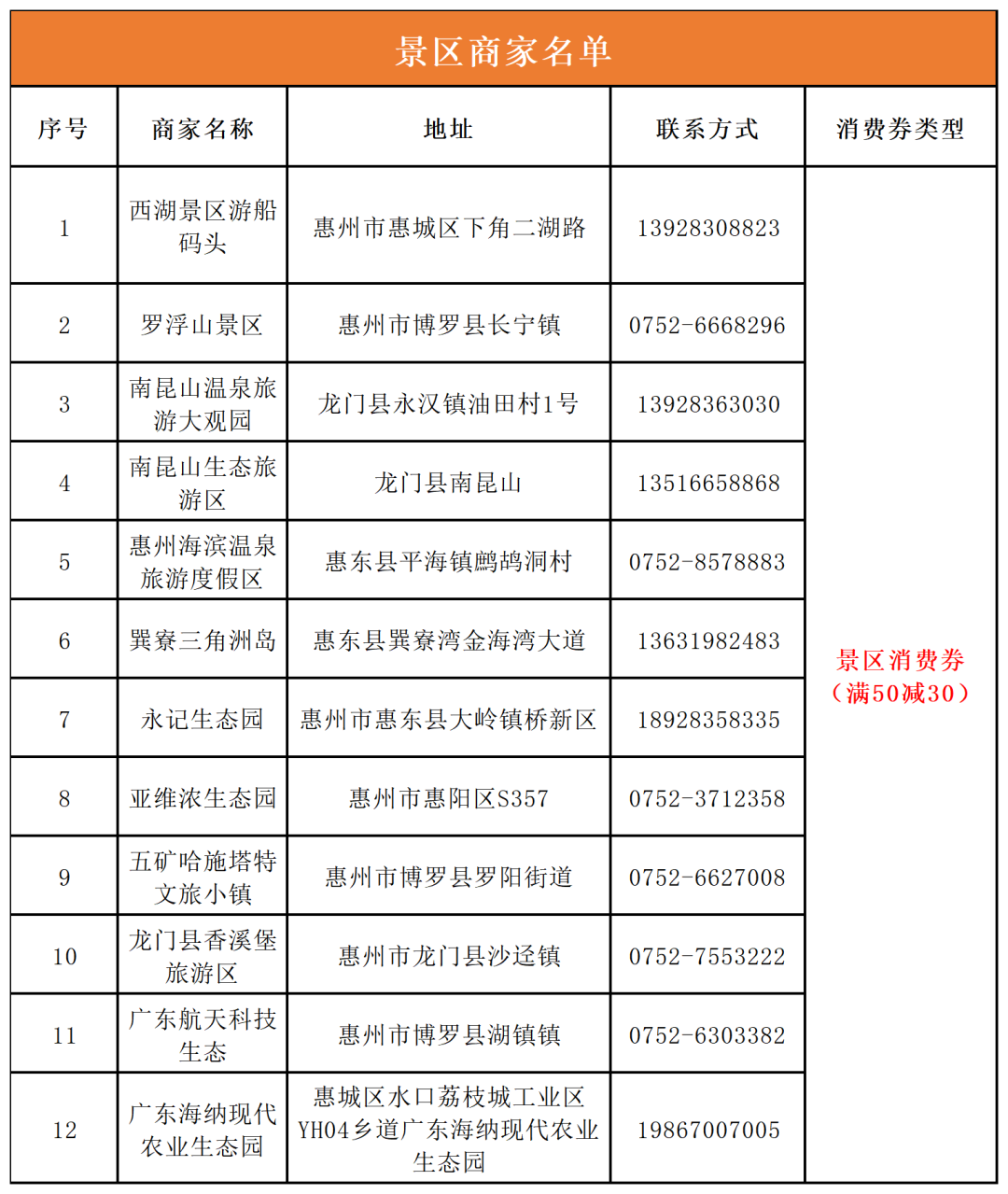 涵蓋了惠州市一批A級景區、精品酒店和民宿