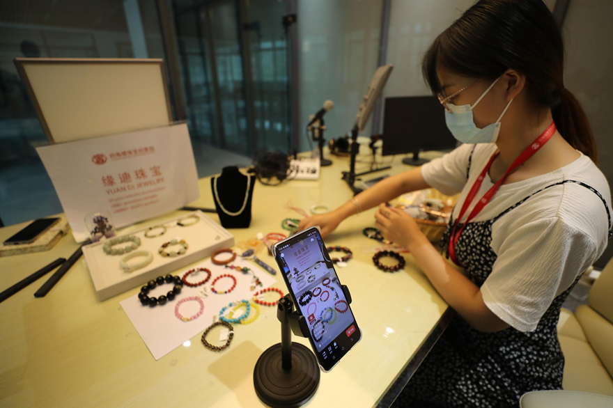 商家開設直播平臺,做直播帶貨。惠州日報記者楊建業 攝