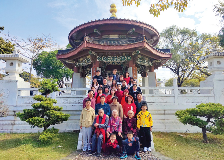 四代人圓了多年心愿(拍攝地點:豐渚園荷花亭前)。惠州日報記者朱金贊 攝