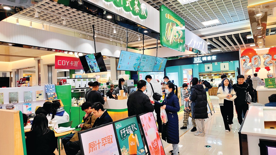 各大商超呈現出了火爆迎客的熱鬧景象。在華貿天地負一樓,主營的餐飲類門店吸引了不少市民朋友前來消費。在奶茶店、特色地方菜以及糕點小吃等門店附近,站滿了前來光顧的市民。其中不少是攜家帶口而來,場面十分溫馨融洽。記者了解到,目前華貿天地精品餐飲門店的進駐數量有100余家,約占商戶總數的30%。