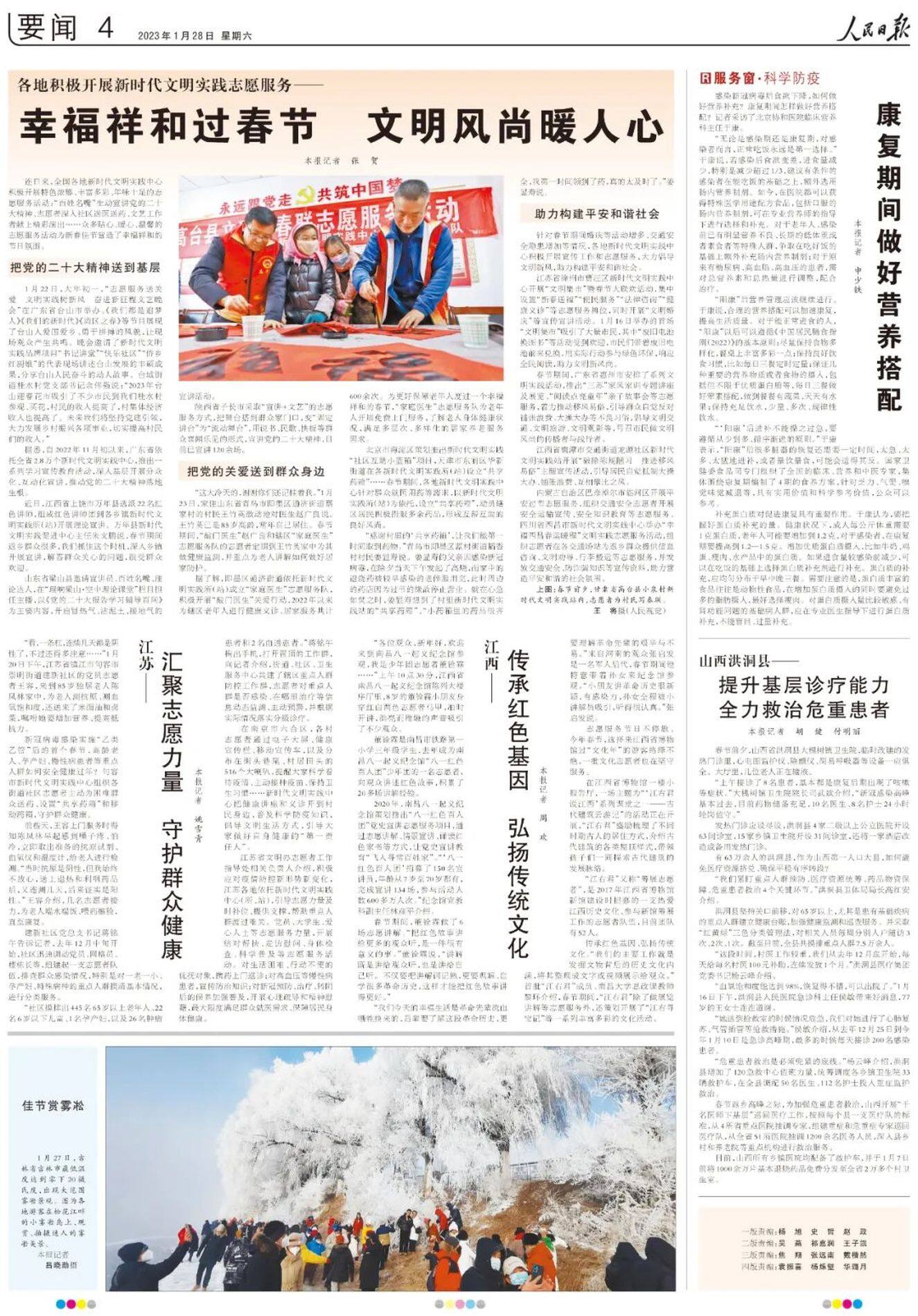 連日來,全國各地新時代文明實踐中心積極開展特色濃郁、豐富多彩、年味十足的志愿服務活動:“百姓名嘴”生動宣講黨的二十大精神、志愿者深入社區送醫送藥、文藝工作者獻上精彩演出……眾多貼心、暖心、溫馨的志愿服務活動為新春佳節營造了幸福祥和的節日氛圍。