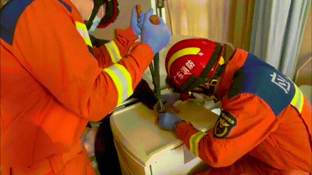 2021年4月25日20時58分,一名80多歲老人的手指被戒指卡住,醫生想盡辦法也無法取下。消防員先用鋼鋸片對戒指剪切出凹槽,再用戒指切割機進行切割,同時不停地在手指上淋水,防止戒指過燙給老人帶來二次傷害。經過近1個小時的努力后,消防員成功取下該老人手指上的戒指。