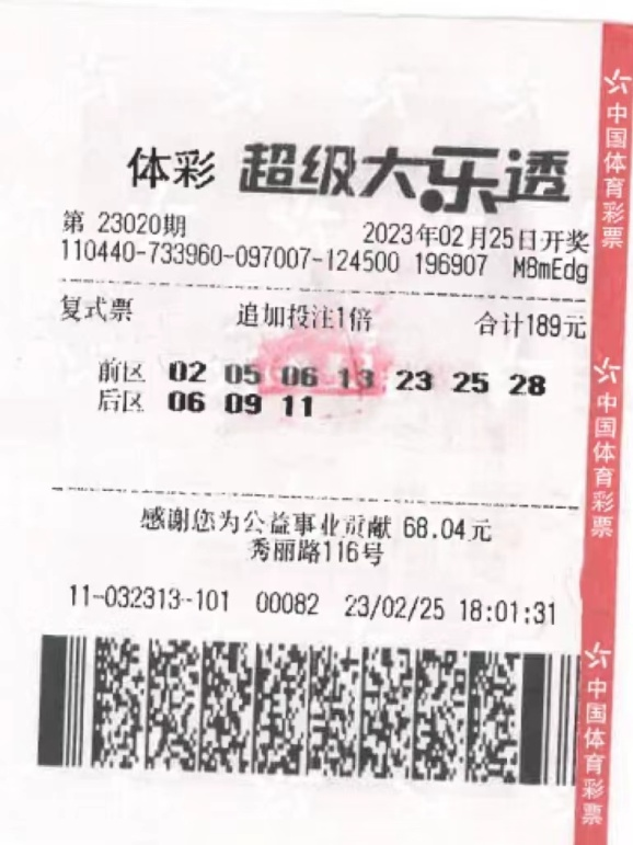 惠州日報訊 (記者劉乙端 通訊員劉國 董穎)惠州又有人中出千萬元大獎了!日前,體彩超級大樂透第23020期開獎,前區開出號碼05、06、23、25、28,后區開出號碼06、09。廣東唯一1注追加一等獎出自我市博羅縣園洲鎮4411032313體彩實體店。3月7日,大獎得主鄧先生(化名)淡定現身,來到惠州市體育彩票中心領走千萬元大獎,為惠州當地貢獻個人偶然所得稅199萬余元。