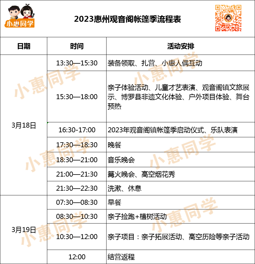 活動名稱:“觀音閣·小惠同學”2023惠州觀音閣帳篷季