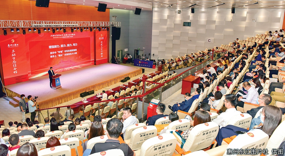 2022年,惠州日報社守正創新構建“三融”(“社融+市融+外融”)生態,全力打造國內一流新型主流媒體:聚焦主題主線,新聞主業更加出彩;構筑“三融”生態,融合步伐更加堅定;“媒體+N”(“媒體+智庫、媒體+教育、媒體+鄉村振興、媒體+文旅、媒體+數字科技”等)提質增效,產業經營更加多元;強化融合互通,通聯合作更加緊密。在各級各部門的大力支持和通訊員隊伍的全力幫助下,報社事業產業各項工作再上新臺階。