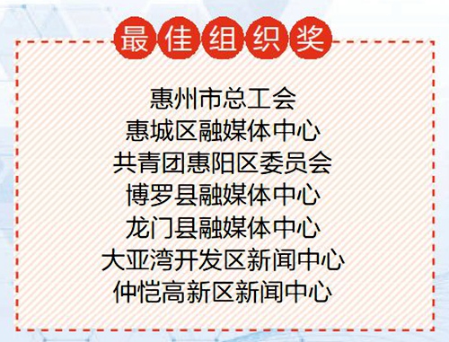 據了解,2022年7月15日,由中共惠州市委宣傳部主辦、惠州日報社承辦的“話說惠州”短視頻大賽正式啟動;顒訛槠诎肽辏舱骷共①愖髌方150條,成為當年惠州關注度最高、影響力最大的城市形象主題短視頻宣傳活動,獲得社會各界廣泛好評。