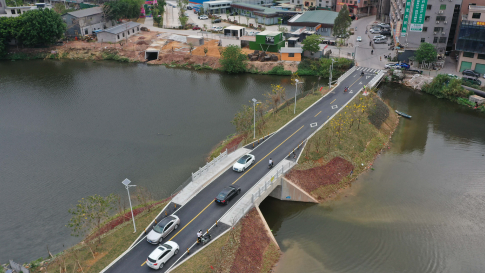 3月23日下午5時許,正值下課下班高峰期,位于惠城區(qū)河南岸街道金山湖片區(qū)的湖山橋上人來車往,熱鬧而有序。橋梁向東西兩邊延伸的道路兩旁,朵朵黃花風(fēng)鈴木已經(jīng)攀上枝頭,護(hù)坡上的草皮和親水植物長勢良好,一派生機(jī)。“不僅提升了我們的安全感和幸福感,村里的顏值也提高了不少。”說起剛剛完成加固通車的湖山橋,周邊居民連連豎起大拇指。