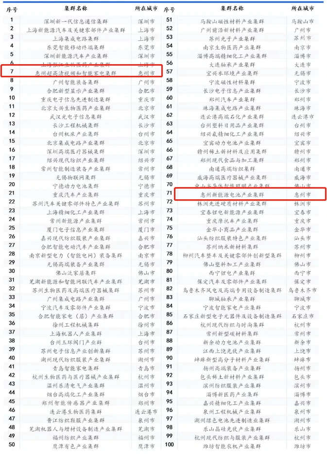 超高清視頻和智能家電集群排名第7,新能源電池產業集群同時入選