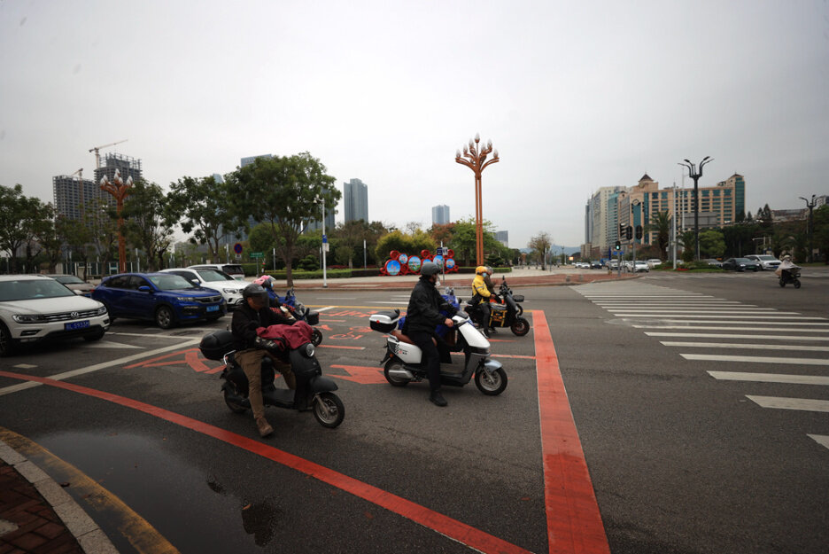 電動自行車在非機動車等候區有序等待。