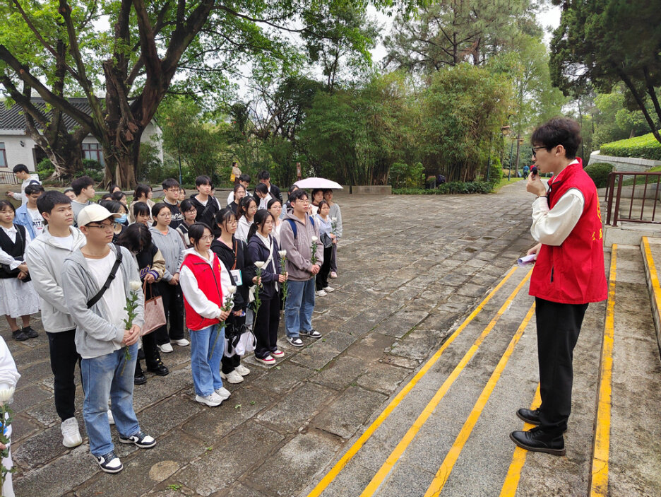 惠州學院的學生來到東江人民革命烈士紀念碑前聽東江人民革命故事。