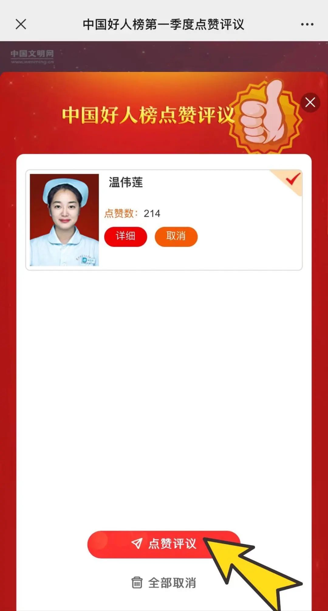 惠城區共有1名候選人參與此次點贊評議活動,快動動手指為我區溫偉蓮點贊吧!