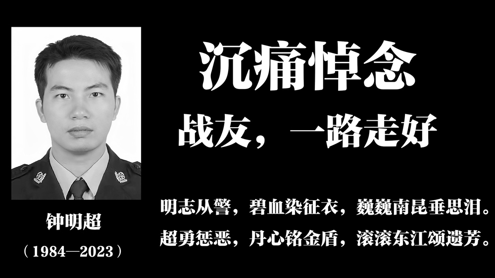 噩耗傳來,痛悼紛至。省委、省政府、公安部、省委政法委、省公安廳和惠州市委、市政府領導先后作出指示批示,對鐘明超同志因公犧牲致以沉痛悼念。公安部政治部、廣東省公安廳政治部發來唁電。
