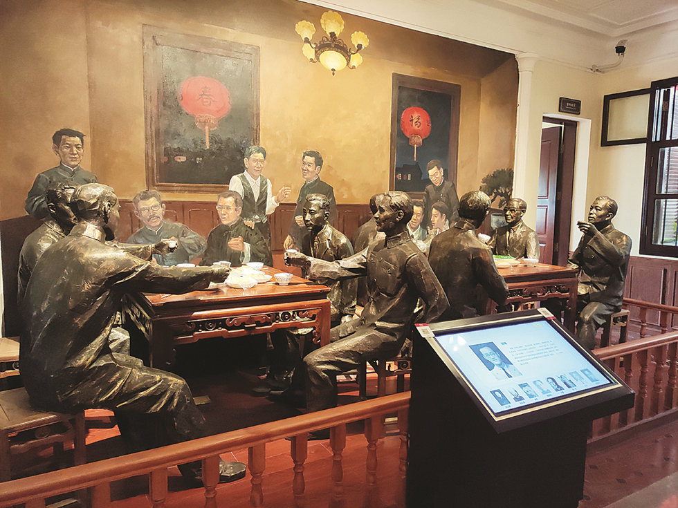 茅盾夫婦在東和行吃年飯的一幕,以銅像的方式復原再現。