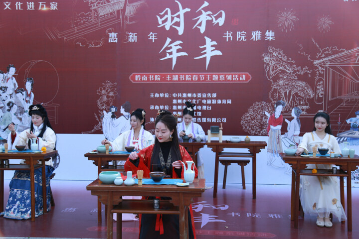 嶺南書院·豐湖書院春節(jié)主題系列活動中的“宋式點茶”。