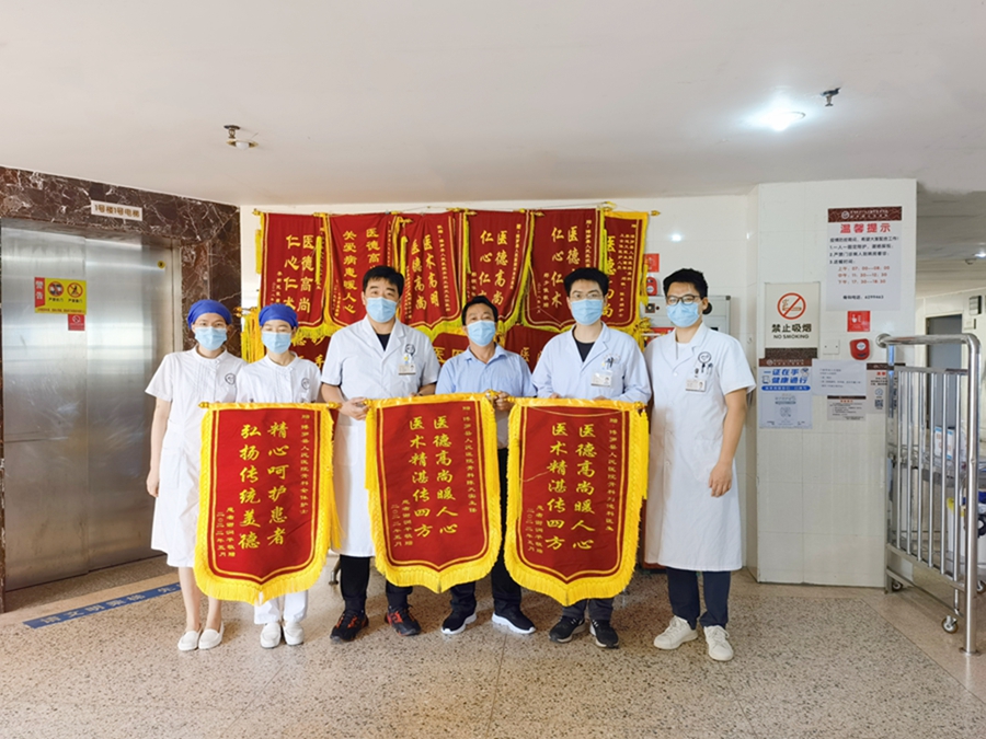 已出院的患者為骨科團(tuán)隊(duì)送來(lái)錦旗以表感謝。