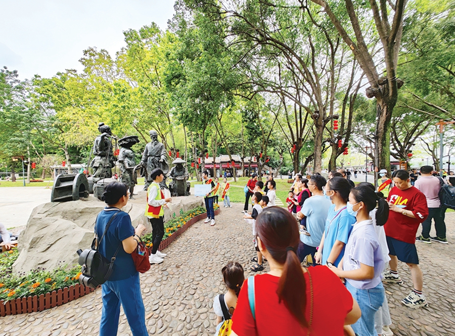 青少年志愿講解員為游客提供講解服務。 惠州日報記者王建橋 攝