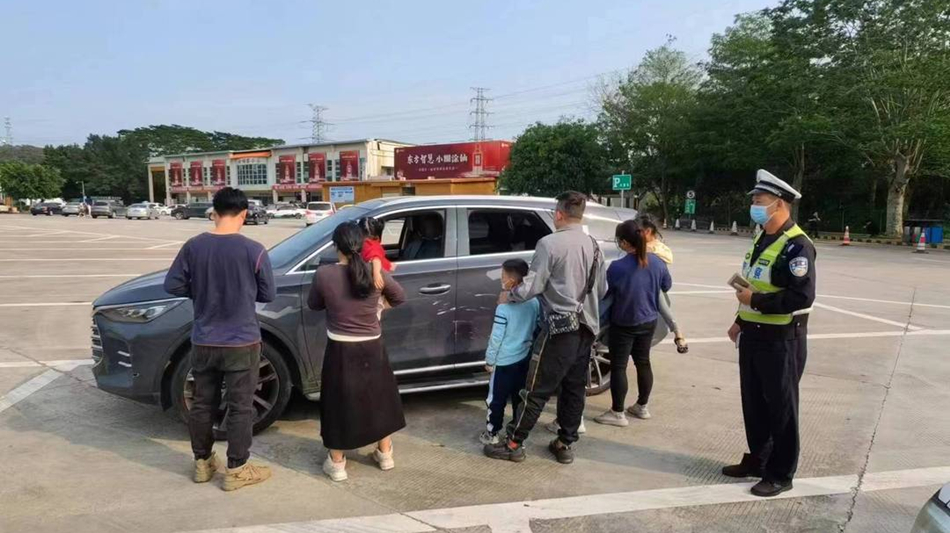 據駕駛員稱,車上人員都是親戚,兩家人約好周末帶小孩去惠東游玩,路過汝湖服務區時短暫停留休息。面對交警的檢查,駕駛員有些不解:“三個孩子都還小,難道也算超員嗎?”民警給予耐心解釋,并對其超員違法行為依法作出處罰,最后將其中的3人轉移至警車內并引導駕駛員從收費站內駛出離開高速,對超員人員做轉運處理。