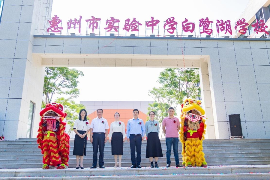 隨后,在精彩的舞獅表演中,到場嘉賓為惠州市實驗中學白鷺湖學校揭下面紗,并前往校園參觀,點贊學校齊全完備的設施設備。至此,惠州市實驗中學白鷺湖學校揭牌儀式圓滿結束!