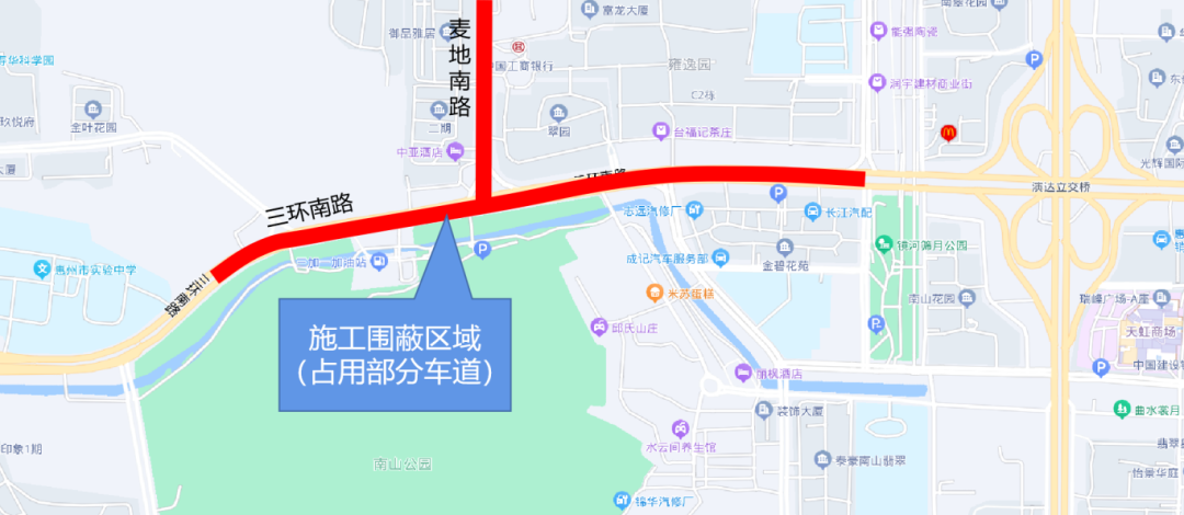 將圍蔽占用三環南路、麥地南路部分