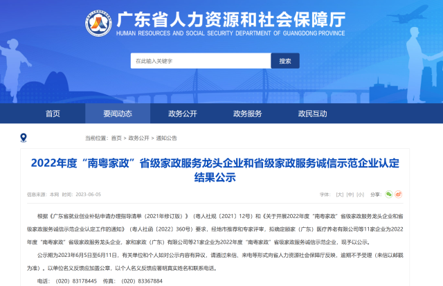 近日,記者從廣東省人力資源和社會保障廳獲悉,2022年度“南粵家政”省級家政服務龍頭企業(yè)和省級家政服務誠信示范企業(yè)認定結果出爐。其中,惠州市德力家政服務集團有限公司入選2022年度“南粵家政”省級家政服務誠信示范企業(yè)。