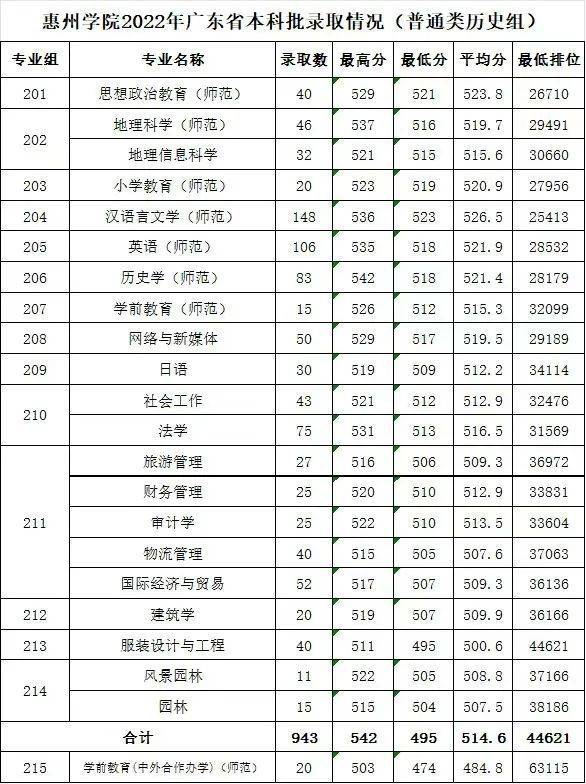 此外,惠州學(xué)院還公布了2022年本科批次的錄取分數(shù)線。
