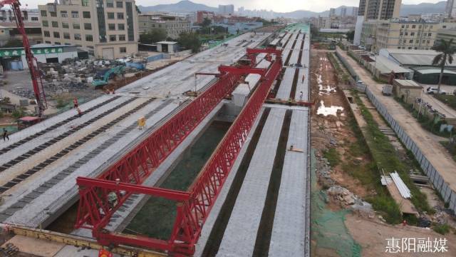6月12日,隨著架橋機鋼索緩緩下落,深莞惠紅色干線改建工程(一期)TJ1標段最后一片預制箱梁精準就位,圓滿完成架設,這標志著深莞惠紅色干線改建工程(一期)項目整體施工節點目標取得重大突破。