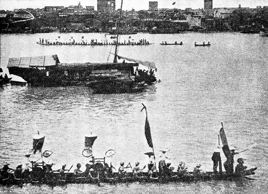 民國初年東江上的龍舟賽。 嚴藝超翻拍