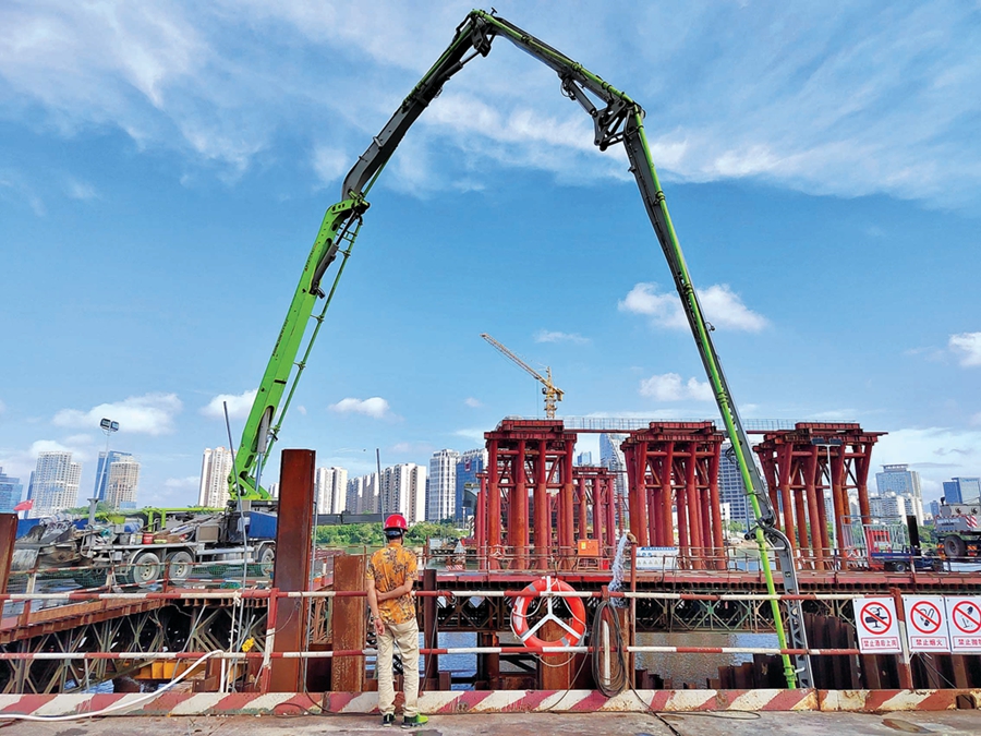 6月26日下午4時許,由中鐵廣州局承建的鵝城大橋主橋ZP4承臺完成澆筑,標志著鵝城大橋主橋承臺完工,大橋建設進入快車道。
