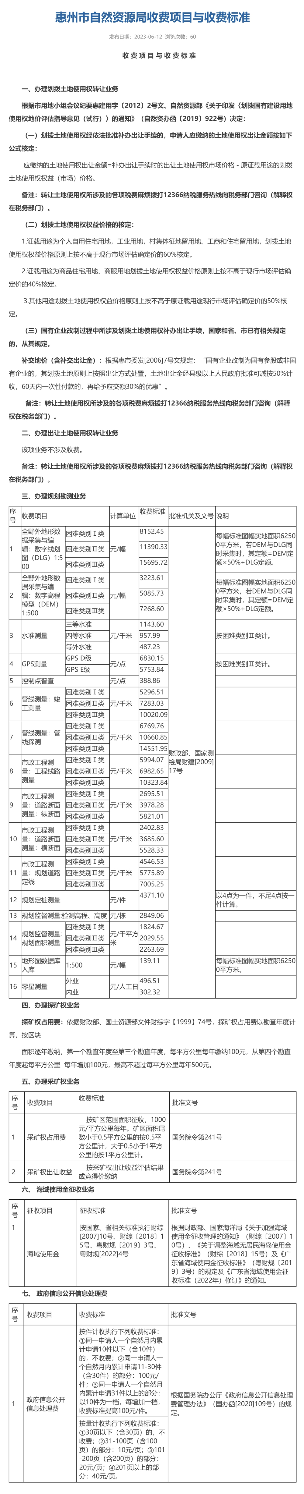 《惠州市自然資源局收費(fèi)項(xiàng)目與收費(fèi)標(biāo)準(zhǔn)》發(fā)布
