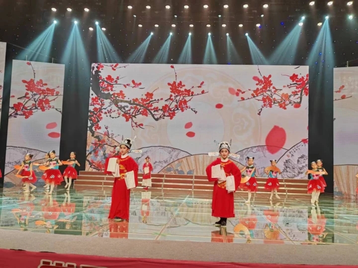 伴隨著激情洋溢的開場舞《陽光少年》,活動拉開序幕。隨后,舞蹈《稻香》、兒歌聯唱《讓我們蕩起雙槳》《快樂的節日》、情景劇《花木蘭》、詩朗誦《雷鋒,新時代的筑夢者》等17個精彩節目輪番上演。愛國主義教育、弘揚傳統文化等主題融入節目演出全過程,教育引領廣大少先隊員爭當德智體美勞全面發展的新時代好兒童。整場演出童趣盎然,精彩紛呈,充分展現了少先隊員們多才多藝、全面發展的風采。
