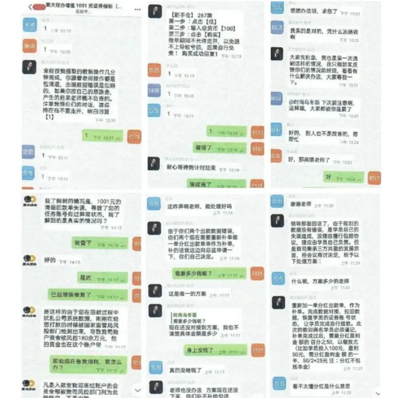 見到有利可圖,小檬在對方的指導(dǎo)下繼續(xù)購買了1211元“證券隨后對方以“清退學(xué)員較多需要隨即匹配統(tǒng)一金額學(xué)員一起完成回款指標(biāo)”為由將小檬拉進一群聊 (群名:英大經(jīng)辦增值1211元證券指標(biāo)群) ,群里一個“監(jiān)管員”,一個“規(guī)劃師”,4個辦理回款學(xué)員 (3個是托)。小檬按照“規(guī)劃師”的指引繼續(xù)操作,隨后對方以操作失誤為由,要求小檬繼續(xù)增加充值額度以尋求一次性匯款成功。7月2日至18日期間,小檬在對方誘導(dǎo)下多次向指定銀行賬戶轉(zhuǎn)賬370291元。