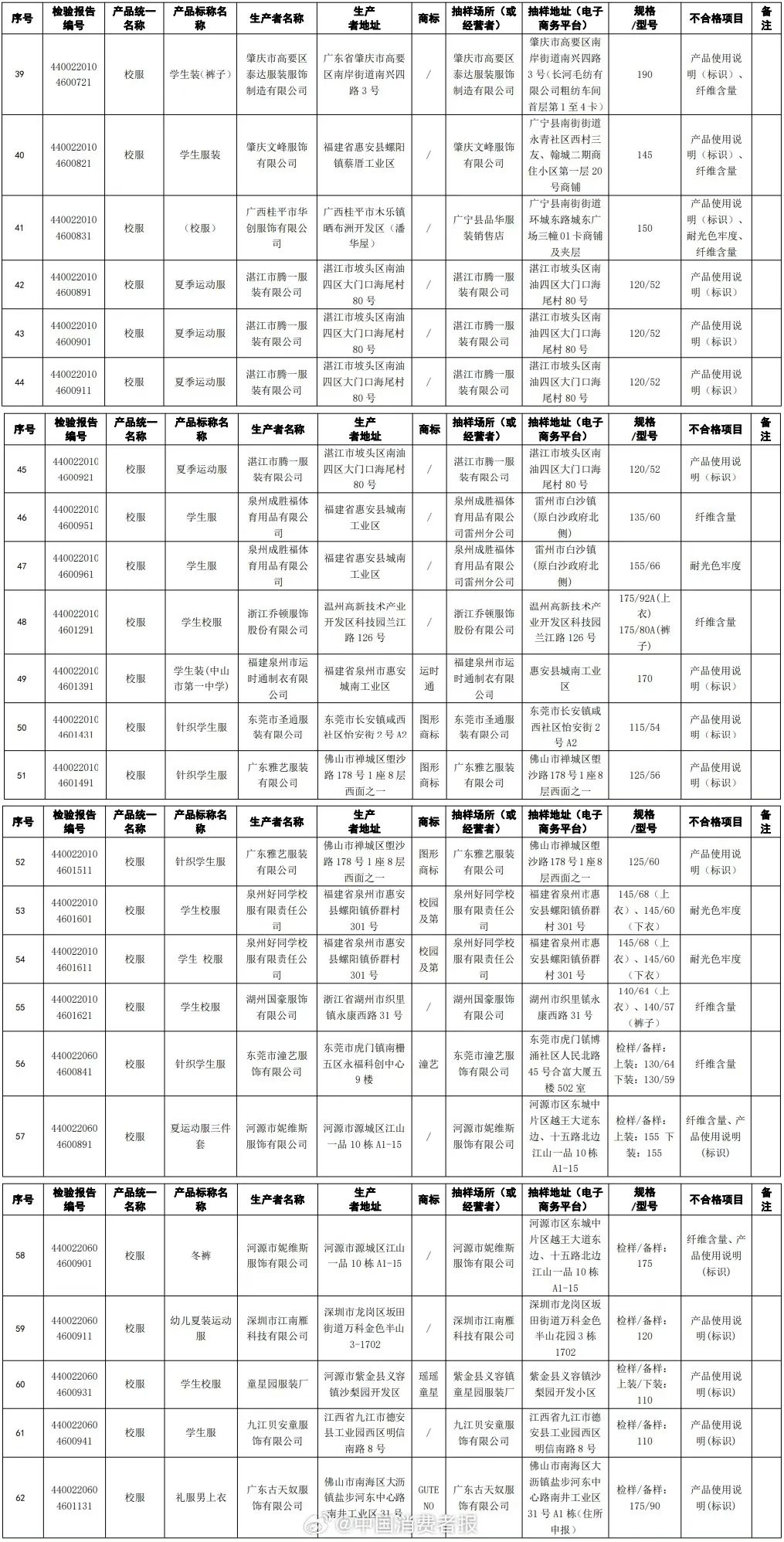 公布2022年校服產(chǎn)品質(zhì)量監(jiān)督抽查情況