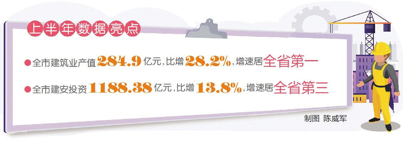 體現在數據上,上半年,全市建安投資1188.38億元,同比增長13.8%,增速居全省第三。對比建筑業產值,兩者雖都是按建筑工程、安裝工程等計算而來,但建筑業產值中未包括外市企業在本地的建筑活動。