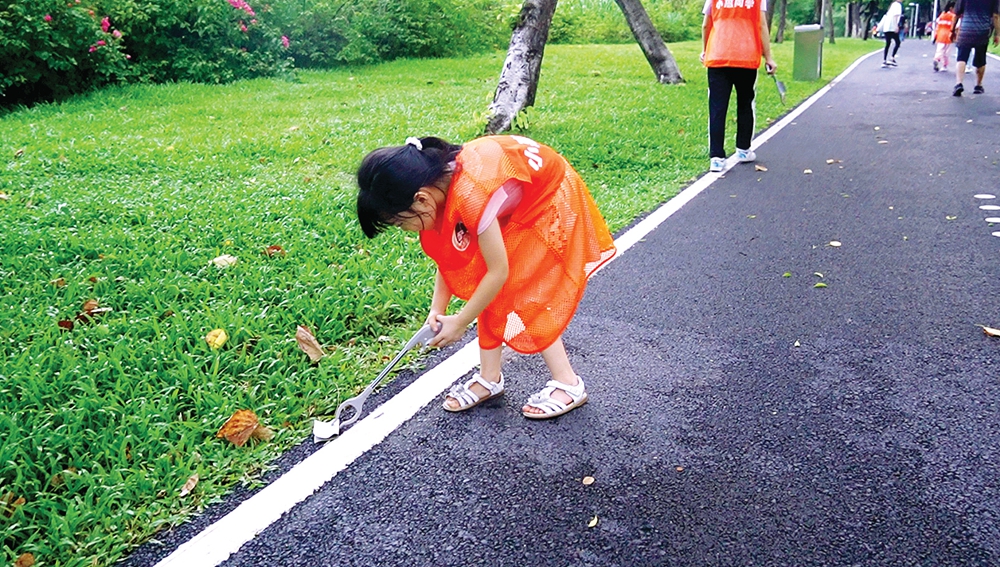 隨后,身穿橙色馬甲的小記者們手持垃圾夾,排好隊伍,和大志愿者們一起有序地沿著江邊撿跑。一路上大家認真尋找散落在地上的垃圾。“都沒有什么垃圾,為什么還要撿跑?”看到干凈的公園,有小記者很好奇。一起參與撿跑的大志愿者告訴大家,因為幾乎每天都有志愿者在撿跑,美化了環境,傳遞了愛護環境的理念,市民素質提升,公園自然就干凈了。