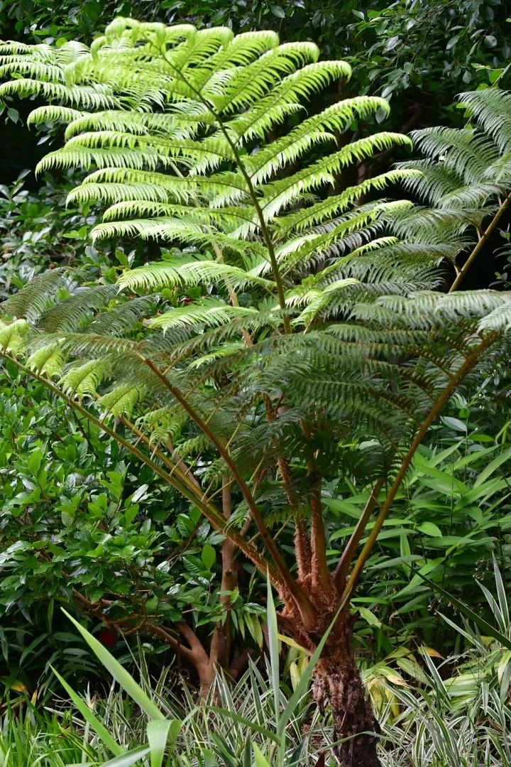 在惠州植物園陰生園里,有多株“與恐龍同時代”樹,它們就是黑桫欏和筆筒樹,都屬于國家二級保護野生植物。早在數億年前的侏羅紀,蕨類植物就在這顆星球上盤根錯節,稱霸整個植物界,而黑桫欏和筆筒樹都屬于桫欏科樹狀植物,起源于約3億6000年前的中生代侏羅紀,是當時恐龍的主要食糧,被人們稱為植物界的“活化石”。惠州植物園通過遷地保護,在陰生園內種了7株黑桫欏和2株筆筒樹,讓這些珍稀瀕危植物重返人們視野。