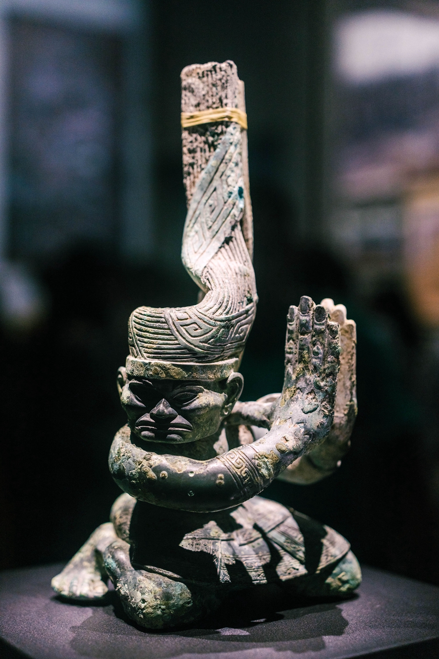 新出土的青銅神壇底座,分布13個人像。