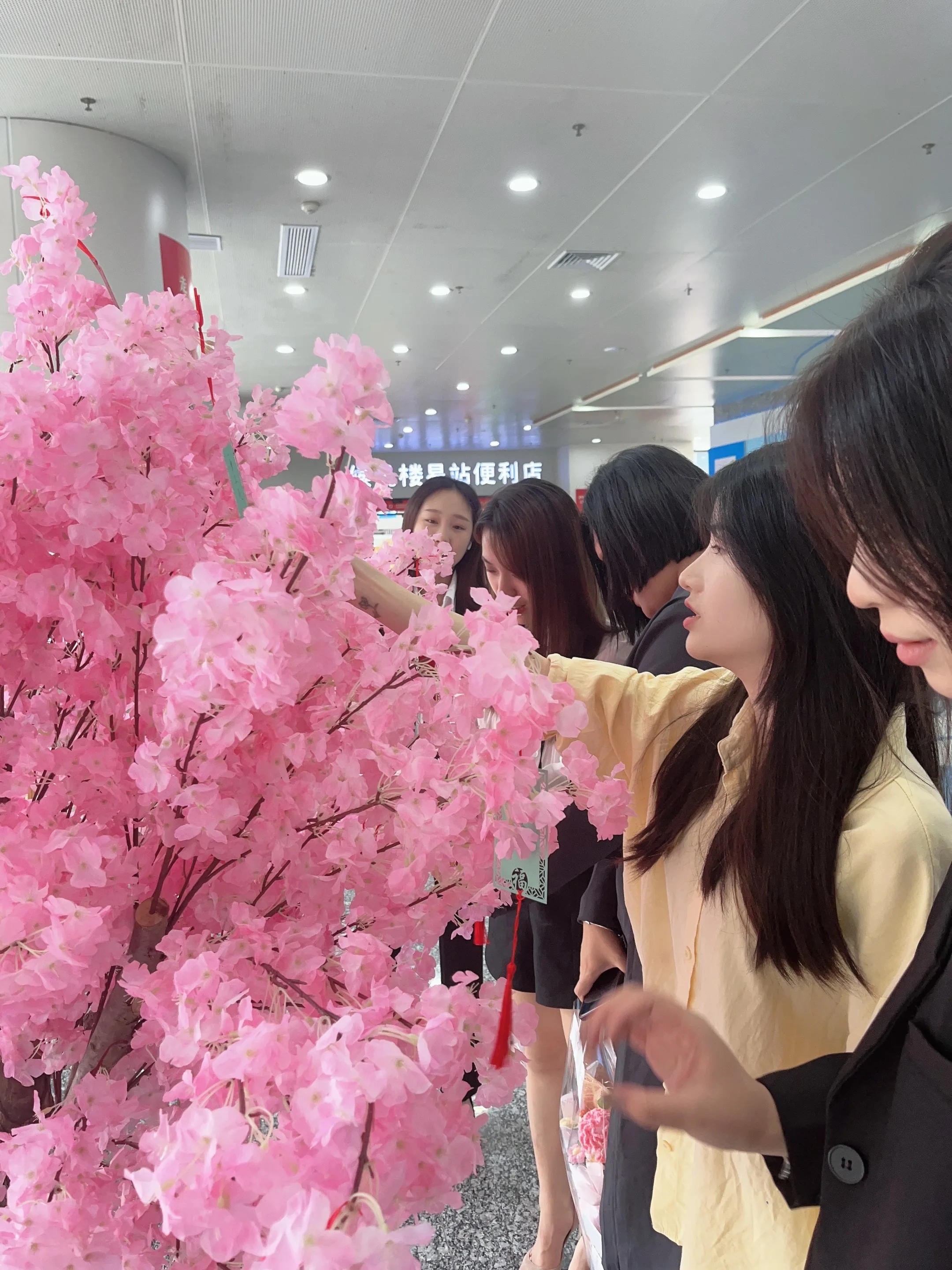 職工們在紙上寫下重要時刻的感動瞬間,然后親手掛在幸福樹上。